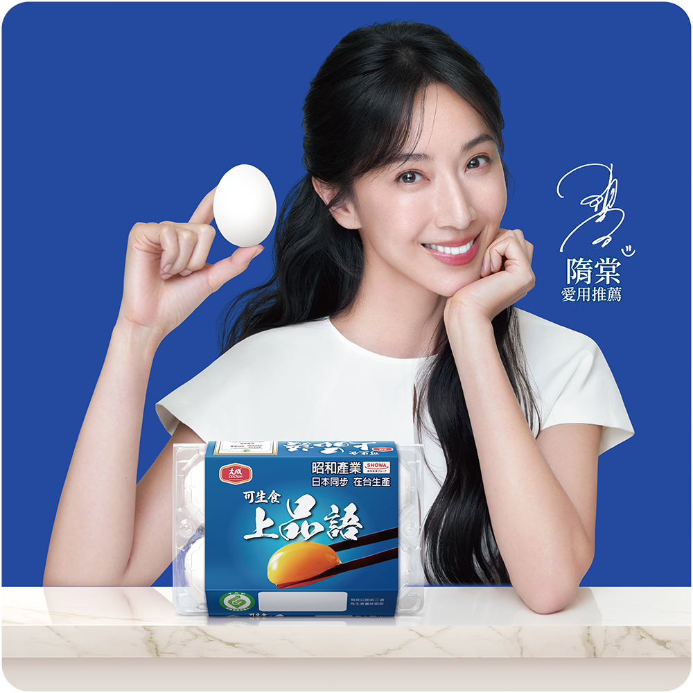 全臺最高品質「大成上品語鮮蛋」,蛋白Q彈、蛋黃香濃無腥味,簡單料理就色香味俱全,為隋棠開啟上品每一天!